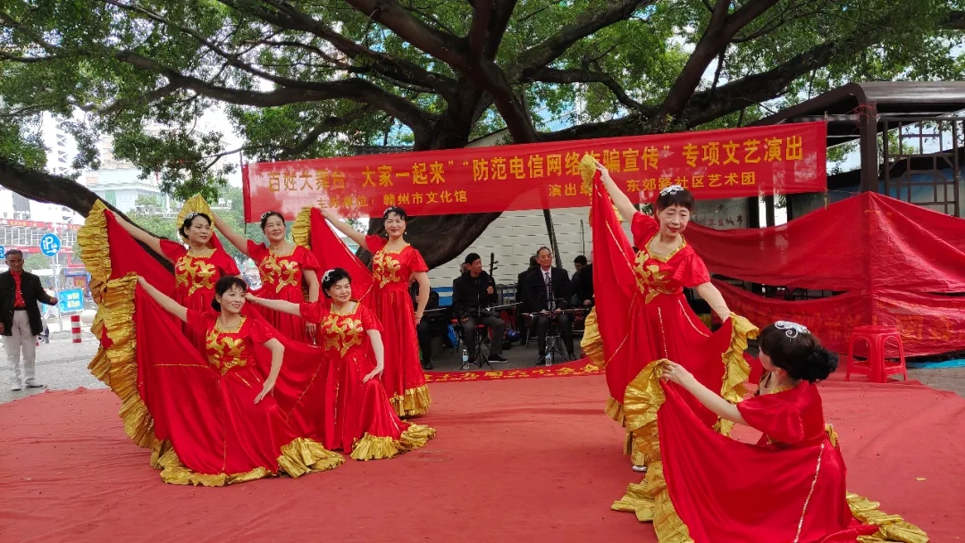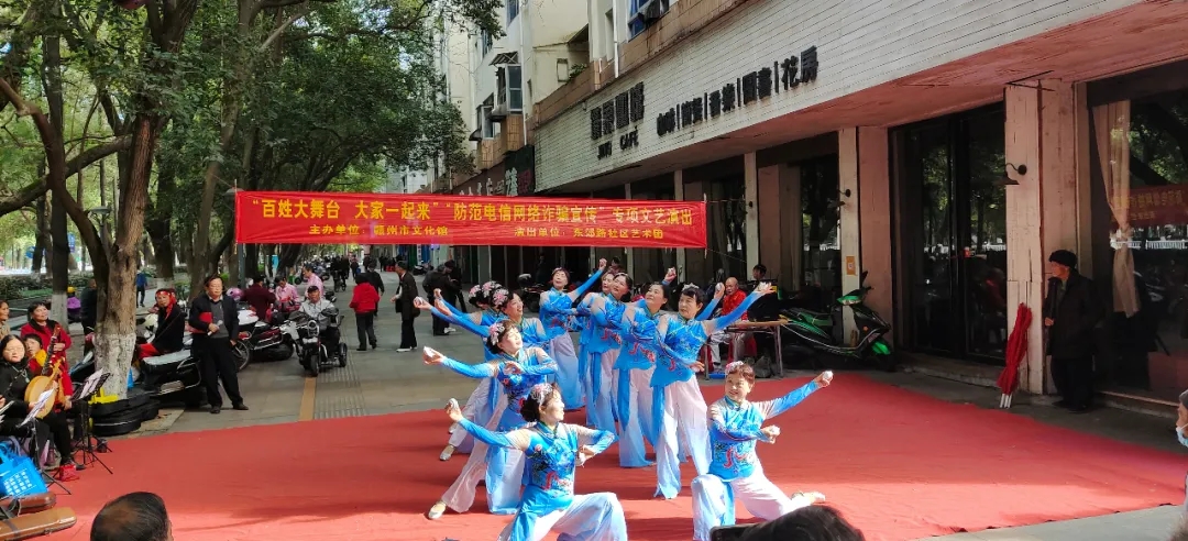 ▲11月17日、19日,宋韵艺术团分别在环城路三角文化广场、郁孤台舞台举行“‘百姓大舞台,大家一起来’反诈防骗”宣传专项文艺演出。