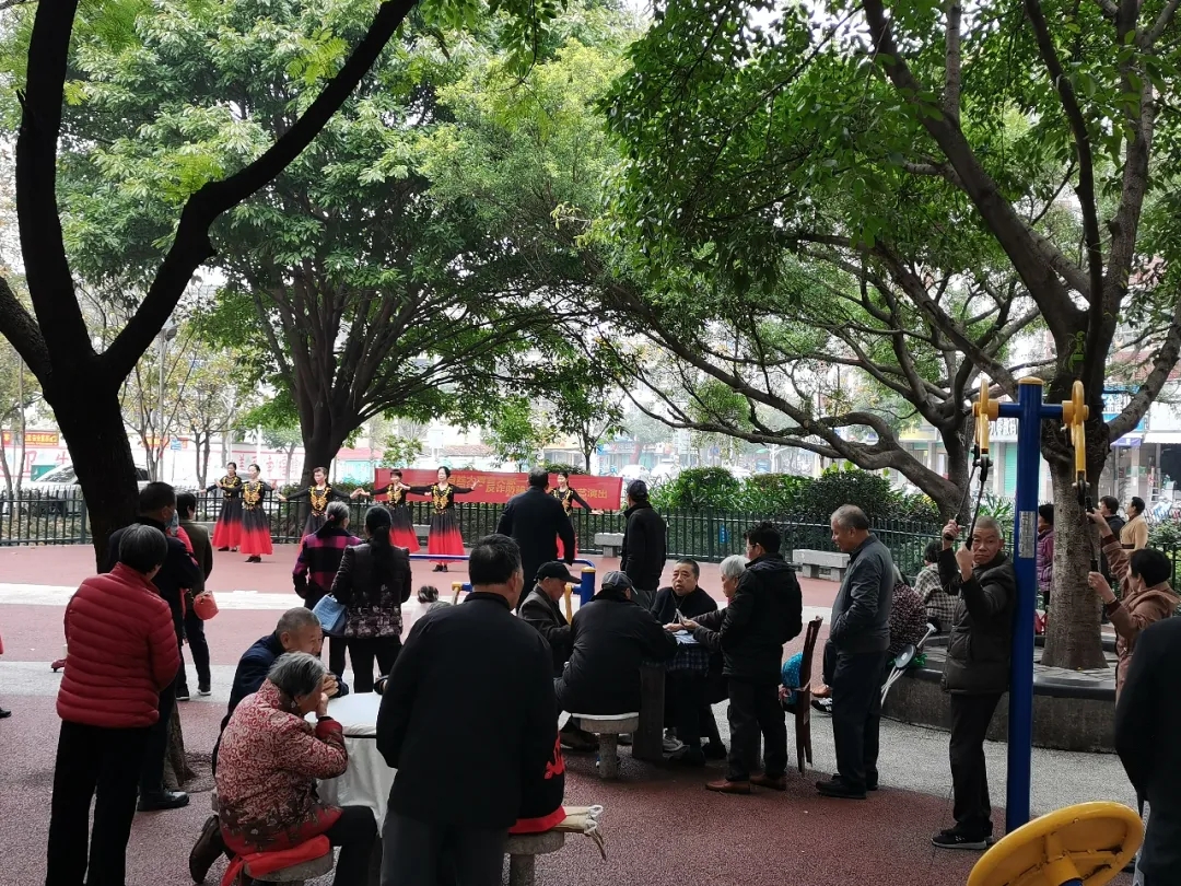 ▲11月22日,人民巷艺术团在三角公园举行“‘百姓大舞台,大家一起来’奋进新时代.筑梦新征程.文化进万家”文艺演出。