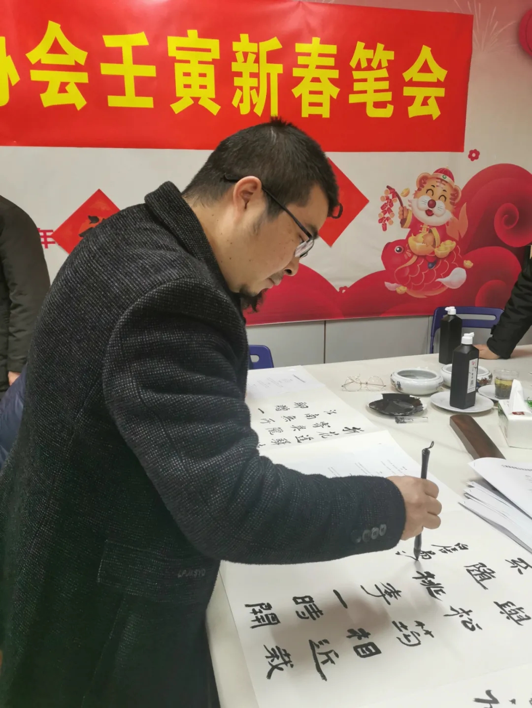 2月13日晚,赣州市文化馆翰墨飘香,喜气洋洋,赣州市书法家协会壬寅新春笔会在文化馆三楼书画室如期举行。赣州市众多书法名家汇聚赣州市文化馆挥毫泼墨,用精彩的书法佳作为大家带来了一场别开生面的书法盛宴。江西省文联副主席、赣州市文联主席李雷应邀出席笔会。