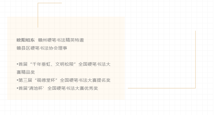 日前,“绍京杯”全国硬笔书法精英邀请展在赣州市文化馆展出,此次展览汇集了全国60名精英硬笔书法家与20名赣州特邀书法家,共80幅硬笔书法作品。展出作品书体丰富、笔法精妙、装帧古雅,一定程度上反映了当今“硬坛”的一流水平,具有广泛的代表性和较高的艺术水准。现将展出的高清作品进行网络展播。