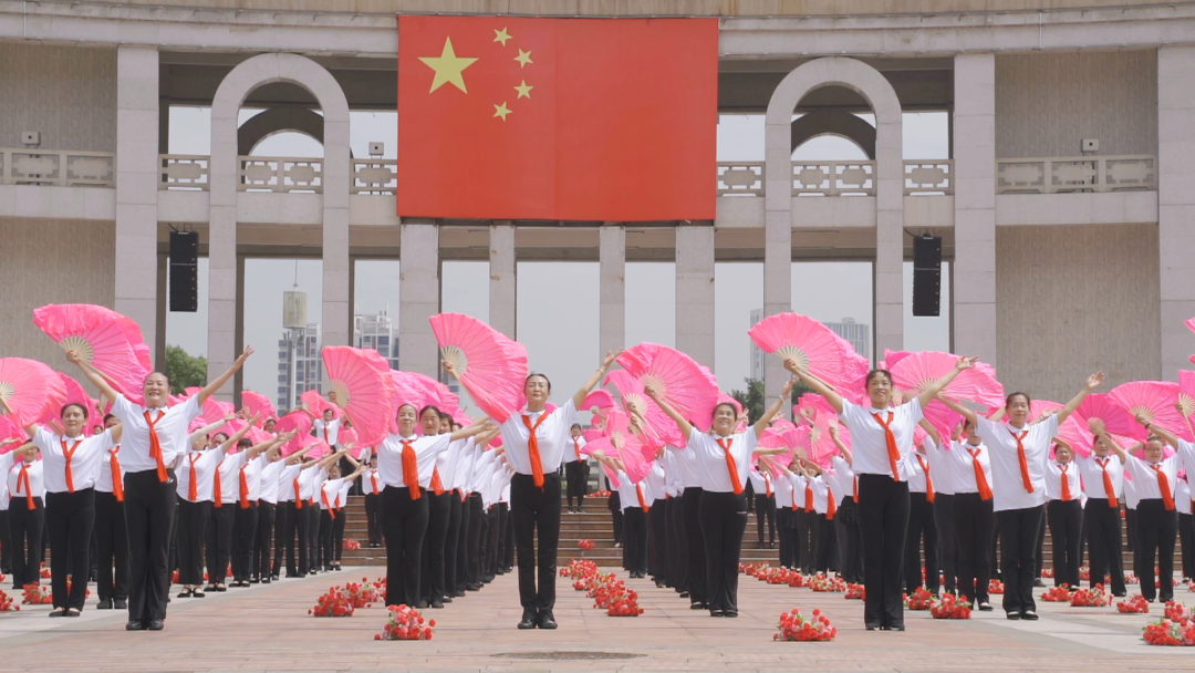 伴随着一首《新长征 再出发》声音唱响,颜色鲜亮的扇子舞动起来,成为全场最靓丽的色彩,表达赣南儿女始终一路向前奔跑,初心不忘,向新的长征再一次出发的坚定信念。