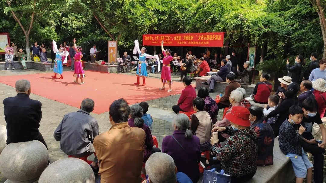 ▲5月3日,东郊路社区艺术团在东河公园举行“‘百姓大舞台,大家一起来’庆五一,迎五四,文明旅游”志愿专场演出。