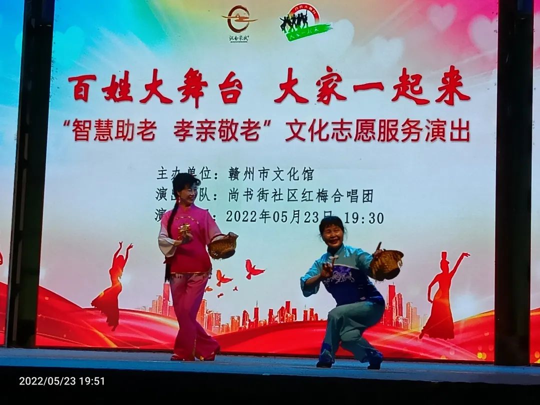 ▲5月23日,红梅合唱团在郁孤台舞台举行“‘百姓大舞台,大家一起来’智慧助老,孝亲敬老”文化志愿服务演出。