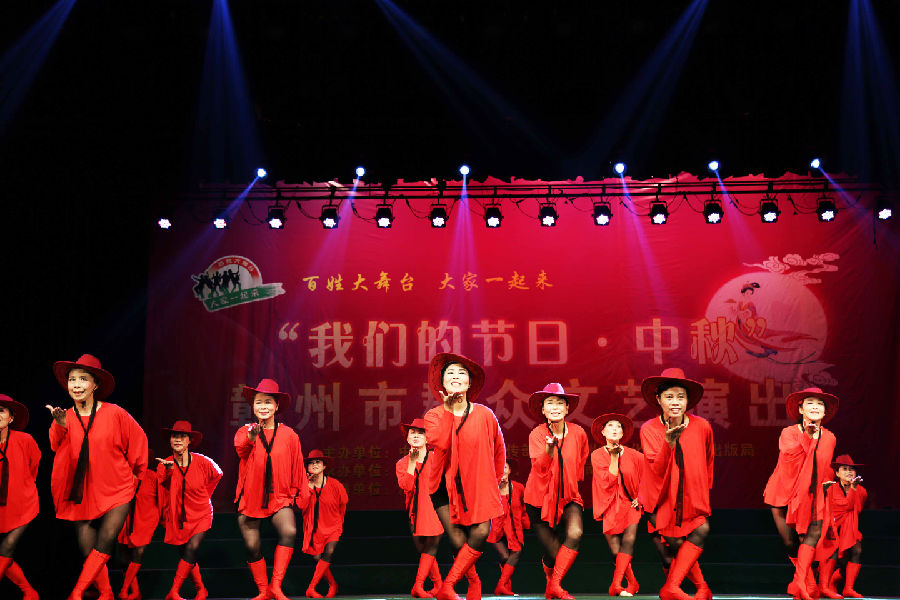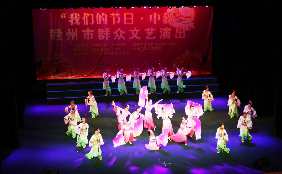 为丰富赣州群众文化生活,营造中秋节日氛围,9月9日晚,由中共赣州市委宣传部、赣州市文化广电新闻出版局主办,赣州市群众艺术馆、赣南采茶歌舞剧院承办的“百姓大舞台,大家一起来”“我们的节日·中秋”赣州市群众文艺演出在赣州市青少年活动中心学术报告馆举行。一千多名群众参加了观看。