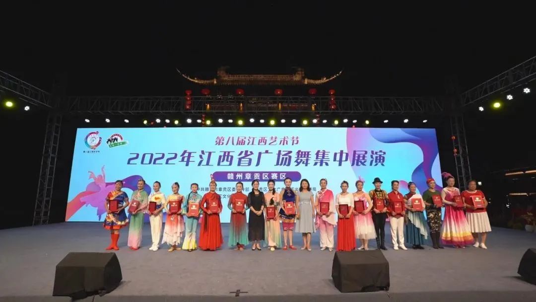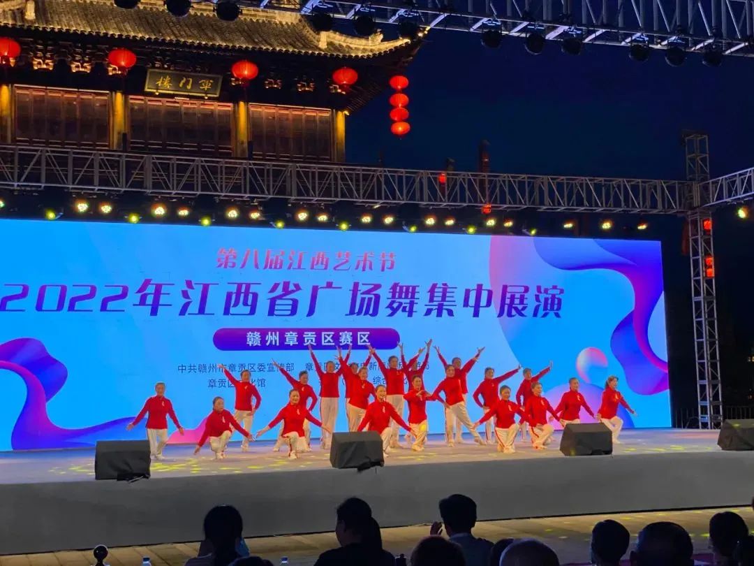 为喜迎党的二十大,展现新时代人民群众新风貌,6月24日晚,由中共赣州市章贡区委宣传部、章贡区文化广电新闻出版旅游局主办,章贡区文化馆、各镇(街道)综合文化站承办的第八届江西艺术节·2022年江西省广场舞集中展演(赣州章贡区赛区)在江南宋城历史文化旅游区举行。