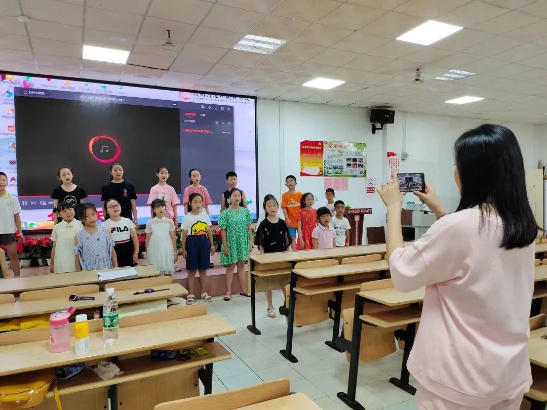 这个暑假,排练现场清脆嘹亮的歌唱声环绕四周,音符满天,倾听青春洋溢的童声演唱,肆意挥洒着只属于她们的可爱,坚持练习演唱的她们,经过了多次动作、音调、状态的调整,最终在比赛中一展风采,成绩斐然。