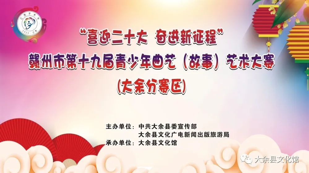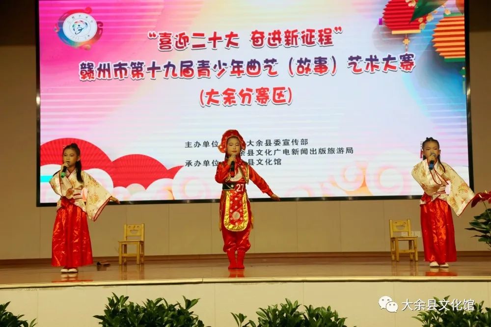 硕果累累的七月,不仅仅是孩子们假期的开始,更是展示学习成果的季节。7月7日, 为深入贯彻习近平新时代中国特色社会主义思想。聚焦“喜迎二十大奋进新征程” 红色旅游季主题系列活动,展现少儿幸福成长的美好生活和感恩奋进的精神风貌,促进曲艺新人培养,振兴曲艺艺术,不断推动少儿曲艺事业的发展。大余县2022年“喜迎二十大 奋进新征程”少儿曲艺(故事)大赛活动圆满举办。