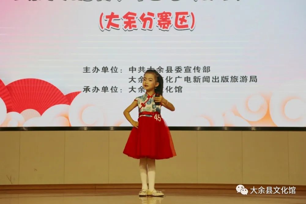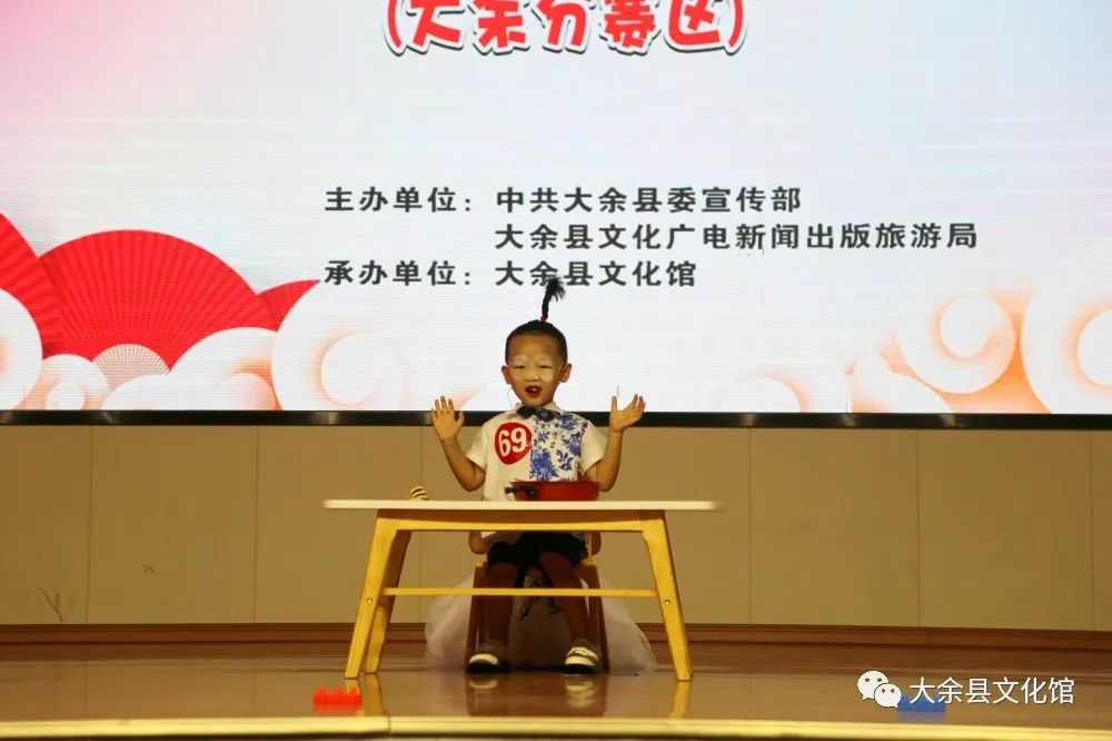 本次活动由中共大余县委宣传部、大余县文化广电新闻出版旅游局主办,大余县文化馆承办。在持续一天的比赛过程中,来自县东门小学、东门幼儿园、水城小学、水城幼儿园、大余县金话筒培训中心、来说口才等选送单位的123个参赛节目轮番上演,说学逗唱,各个精彩,给现场观众们带来了一场精彩纷呈的曲艺视听盛宴。