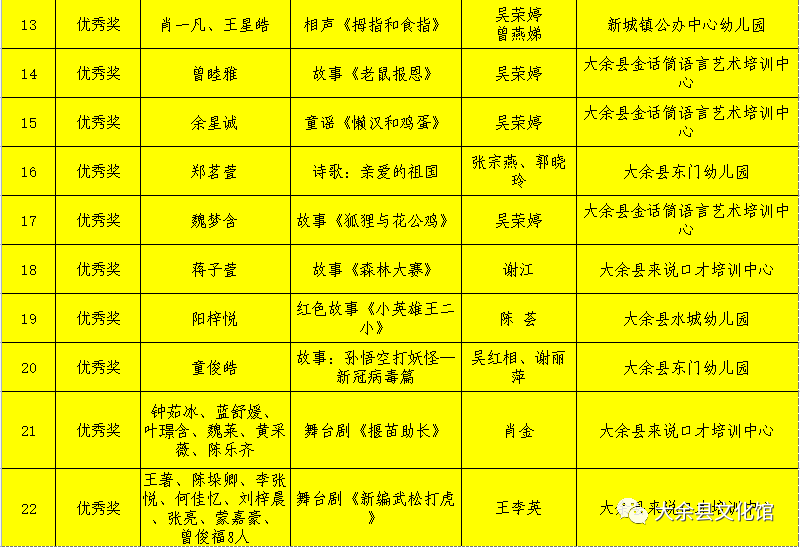 少儿曲艺(故事)大赛作为大余县文化馆的重要馆办品牌活动,每一年都受到大余县青少年儿童、广大教师、学生家长等社会各界的关注、认可和称赞。