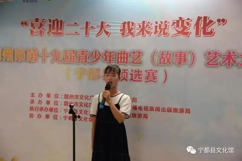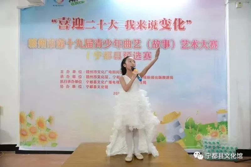 为了深入贯彻习近平新时代中国特色社会主义思想,聚焦“喜迎二十大,我来说变化”红色旅游季主题系列活动,展现青少年幸福成长的美好生活,和感恩奋进的精神风貌,促进曲艺新人培养,振兴曲艺艺术,不断推动少儿曲艺事业的发展。2022年“喜迎二十大,我来说变化”赣州市第十九届青少年曲艺(故事)比赛宁都分赛场预选赛活动成功举办。