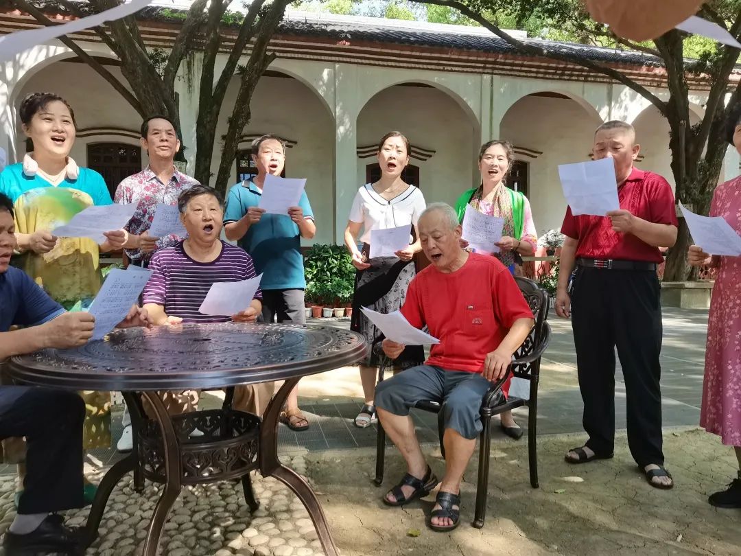 “无论多远,你都在我们身旁,信念永恒,初心不忘……”文化志愿者合唱歌曲《领航》,以催人奋进的情绪来表现这首歌颂共产党恢宏气象的作品。