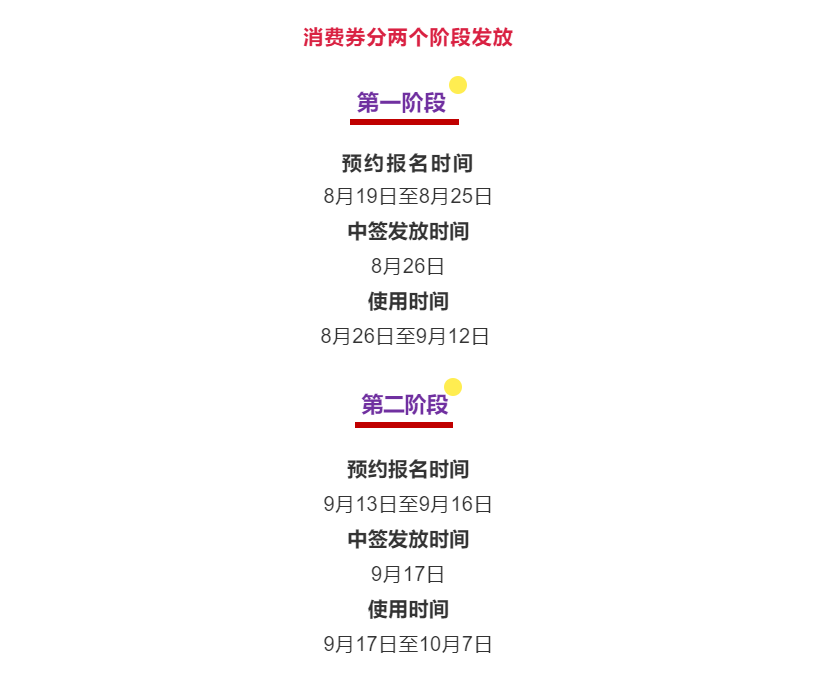 此次消费券每份价值200元,包含100元文旅消费券,凭券可到指定景区、酒店、餐饮、影院、书店、旅行社消费,使用规则为满30元减20元,满60元减40元,以此类推;商超券100元,凭券到指定商超消费,使用规则为满200元减100元。活动采取预约报名中签形式,成功中签后即可在指定商户消费,通过云闪付支付即可享受消费券优惠。