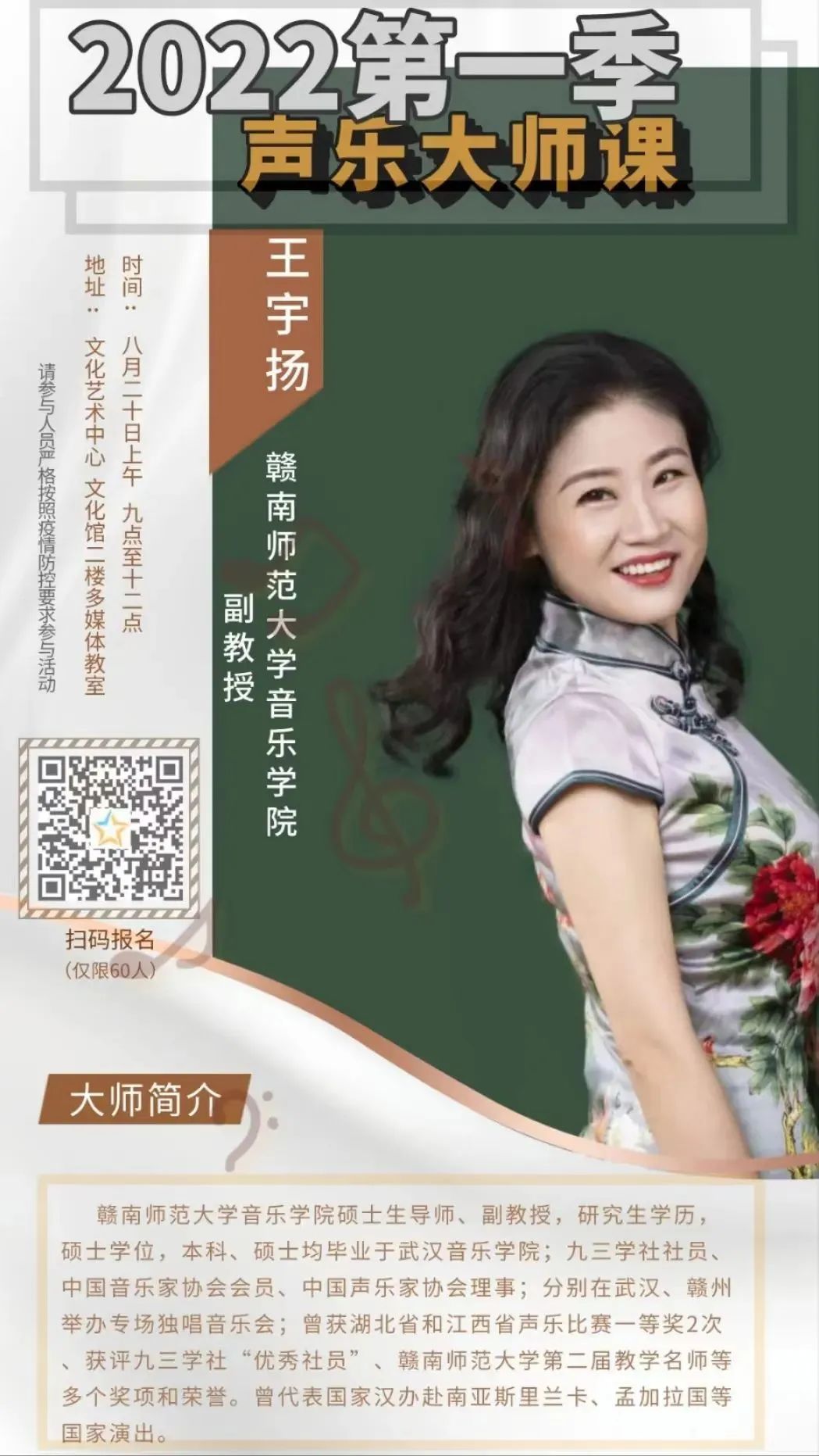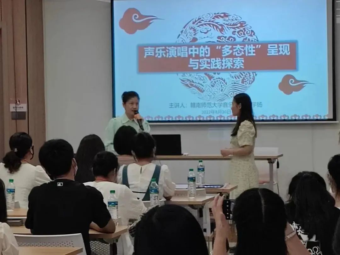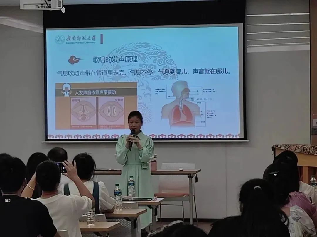 课堂上,王宇扬教授通过现场示范、现场指导和音视频范例等多种方式深入浅出的讲解了声乐的发声基础、声乐的多态呈现、声乐呈现形态与演唱实践。