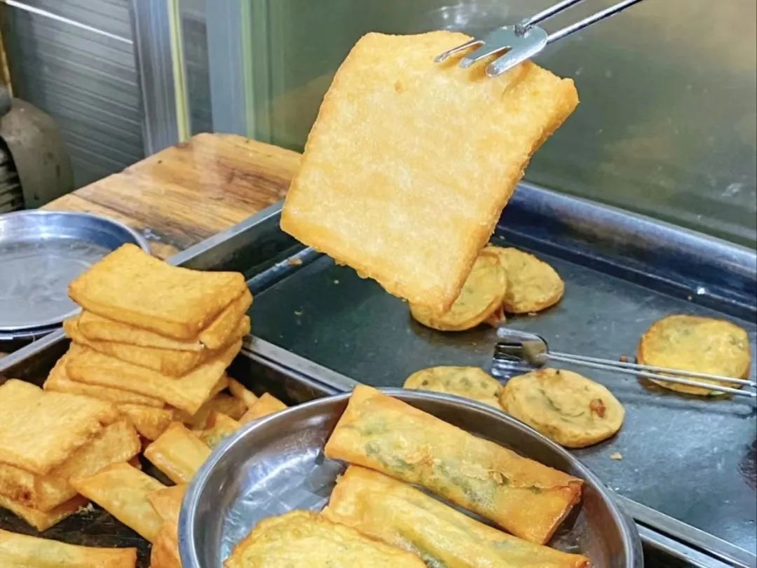 此刻,先随手写下一些早点名称吧:糕头、勺子米粿、麻球、油饼、油条、春卷、油烧饺子、芋包、薯包、薯包鱼、麻糍,以上为炸品;烫皮丝、沙河粉、粉干、漱粉、黄元米粿、年糕,以上为煮品;发糕、七层糕(九重皮)、韭菜饼、艾米粿、包米粿、糯米鸡、肠粉,以上为蒸品。以上为大类,其中又可以分成许多小类,比如勺子米粿,就按配料可分成韭菜、腌菜、茄子、窝瓜等等,艾米粿就更丰富了,只是最熨贴的时节在清明前后。