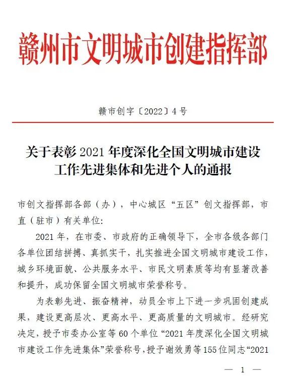 喜报!市文化馆荣获2021年度深化全国文明城市建设工作“先进集体”称号