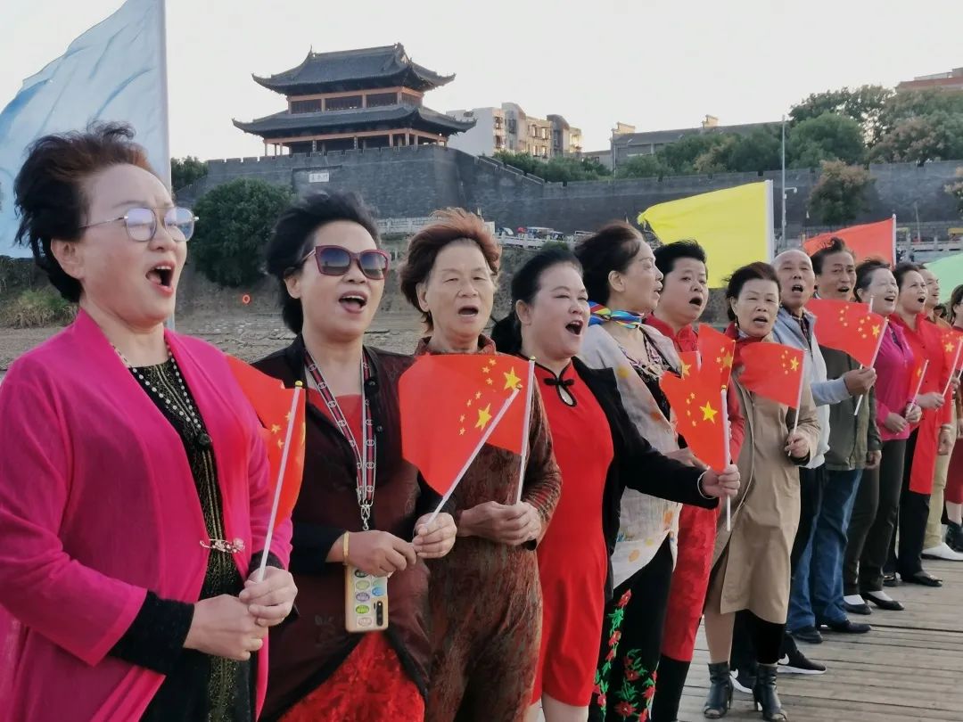 传唱过程中,文化志愿者们满怀深情的演唱吸引了周边群众热情参与,他们随着歌声的节奏挥舞着手中的五星红旗,尽情唱出了人民群众对党和祖国的热爱之情。