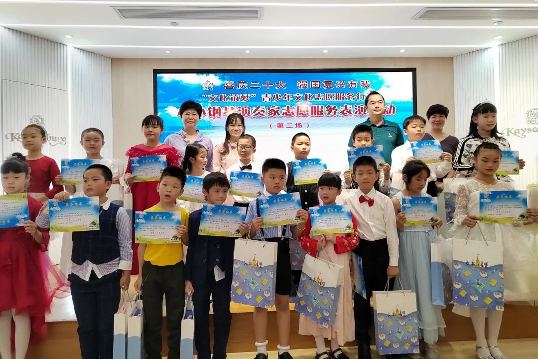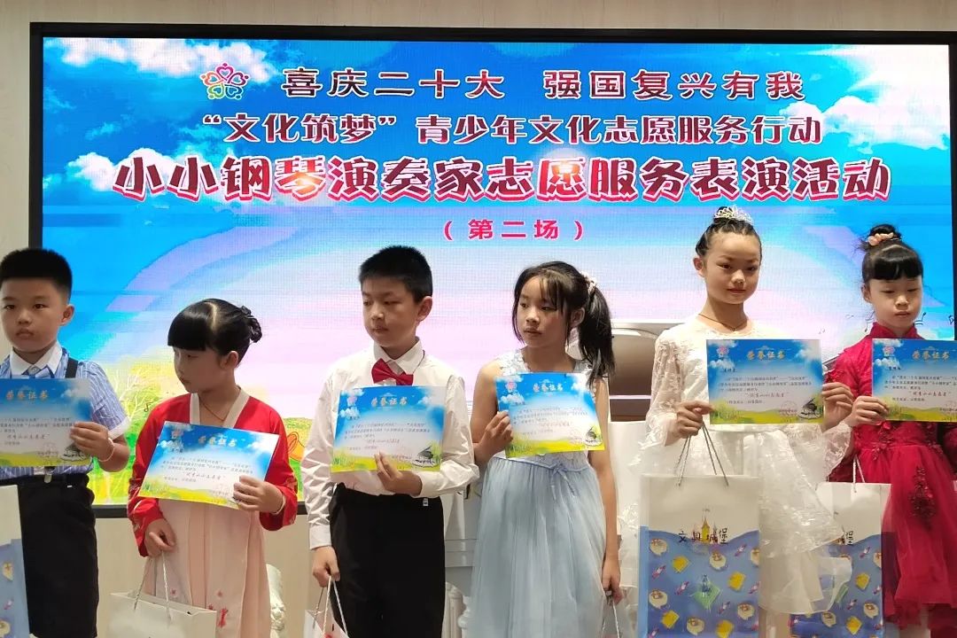 为热烈庆祝党的二十大胜利召开,丰富我市群众文化生活,10月23日上午,由赣州市文化馆主办,赣州市虔城钢琴艺术协会协办的“喜庆二十大 强国复兴有我”——“文化筑梦”青少年文化志愿服务行动暨小小钢琴演奏家志愿表演活动(第二场)如期举行。小小钢琴演奏家们用音乐展现他们朝气蓬勃的风采,为观众奉献上了一场精彩纷呈的视听盛宴。