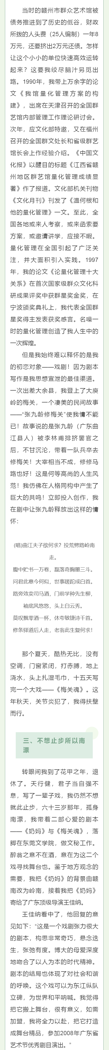 为深入学习习近平新时代中国特色社会主义思想,迎接党的二十大胜利召开,营造学习宣传贯彻党的二十大精神的浓厚氛围,进一步讲好赣州故事,传播当代中国价值观念,坚定文化自信,根据省文旅厅《2022年江西省“百馆千万场 服务来共享”系列群众文化活动方案》精神,赣州市文化馆特推出【百馆千万场 服务来共享】之“赣州文化大讲堂”栏目,今天推出的内容为原赣州市群众艺术馆馆长、国家一级编剧温何根的《我的戏剧人生》。