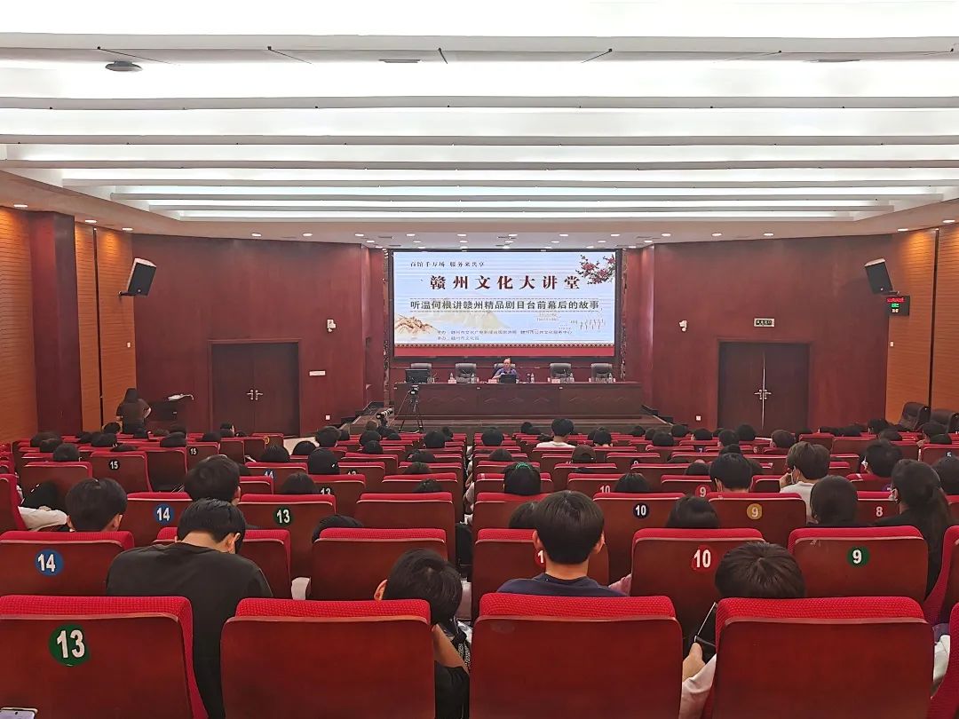 为营造学习宣传贯彻党的二十大精神的浓厚氛围,传承红色基因,赓续红色血脉,讲好赣州故事,坚定文化自信,根据省文旅厅《2022年江西省“百馆千万场 服务来共享”系列群众文化活动方案》“与学校联合开办红色课堂,开展红色文艺作品赏析”等精神,10月26日,由赣州市文化馆承办的赣州文化大讲堂“听温何根讲赣州精品剧目台前幕后的故事”,在赣州师范高等专科学校理科楼报告厅圆满举行。