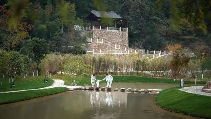 项目设计中,我们巧妙地将传统书院的建筑气质和景观风貌融入乡村环境中,形成新式书院景观;项目最大程度保留了农田,为师生修学与劳作预留了场地,农田风貌与周边书院景观相辅相成。同时,设计从生态角度对小镇环境进行了修复与创造,充分尊重了场地原有的地形地貌,出于防洪需要对山上流下的泉水所形成的灌溉水渠进行了保留;同时利用地势高差进行叠石蓄水,形成君子河,汇聚湖泊;并引出一路活水穿街入巷,还原传统客家家户户门前放水冲街的场景,形成三条水系并行的水系景观。