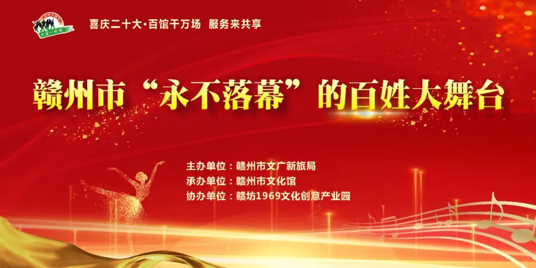 为学习宣传贯彻党的二十大精神,丰富群众的精神文化生活,传递社会正能量,展现赣州人民奋进向上的时代风貌,推进文化自强自信,进一步增强广大群众的文化幸福感、获得感,由赣州市文广新旅局主办,赣州市文化馆承办,赣坊1969文化创意产业园协办的4场赣州市“永不落幕”的百姓大舞台活动即将精彩呈现。