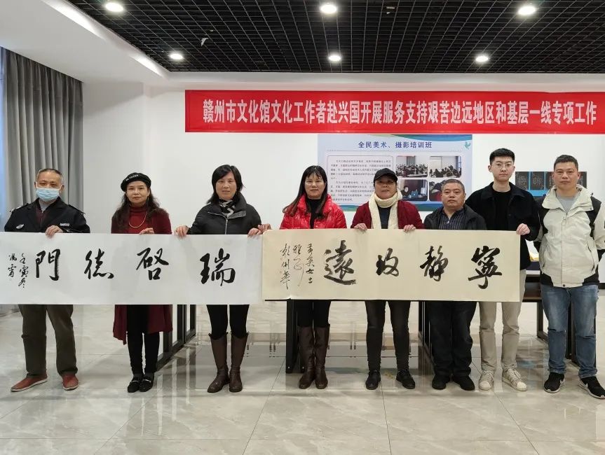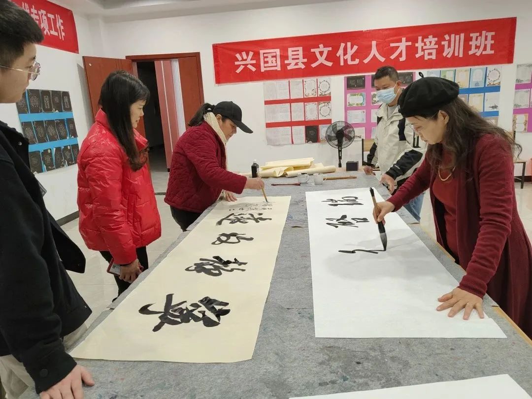 为贯彻落实文化和旅游部办公厅、财政部办公厅《2021——2022年文化人才服务支持艰苦边远地区和基层一线专项实施方案》精神,进一步提升我市基层文化服务水平,加强基层文化人才建设,11月30日,赣州市文化馆书画家冯霄、赖俐华等一行走进兴国县文化馆,实地开展服务支持边远地区和基层一线专项工作。