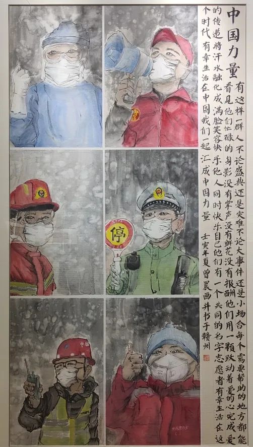 本次展览的书画作品风格各异,具有鲜明的时代特色。一幅幅少儿作品色彩明快、稚趣盎然,蕴含着丰富的想象力。江西少年儿童用稚嫩的双手,七彩的画笔描绘心中的美丽中国和幸福生活,表达了对伟大祖国的热爱,用图画定格下抗疫同行的志愿者坚守平凡、传递爱心汇聚的中国力量,赞颂了志愿者无私奉献的高尚品质。在书法作品中,少年儿童以笔墨丹青尽情书写下对新时代祖国奋进创新发展未来新篇的美好祝愿,充分展现了江西少年昂扬向上的精神风貌和极具创新创意的文艺风采。