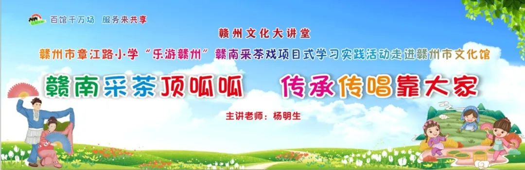 为学习宣传贯彻党的二十大精神,传承中华优秀传统文化,继11月27日赣州市文化馆与赣州市章江路小学联合成功开展了第一期赣州文化大讲堂后,12月5日,赣州市章江路小学“乐游赣州”赣南采茶戏项目式学习实践活动再次走进赣州市文化馆,并圆满开展了以“赣南采茶顶呱呱 传承传唱靠大家”为主题的赣州文化大讲堂。此次大讲堂由赣南采茶戏代表性传承人杨明生老师授课。