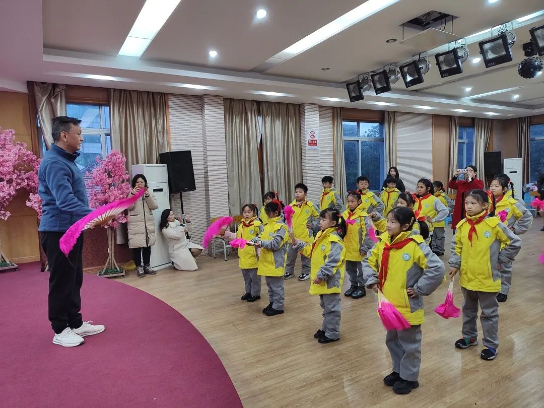 课堂上,杨明生老师与学生积极互动,用扇子、单袖筒等道具深入浅出地讲解了赣南采茶戏的相关知识,并解答了学生们提出的新颖、有趣的问题。在实践演示过程中,学生们手拿扇子,跟着老师舞动身体,切身体验赣南采茶戏的独特魅力。