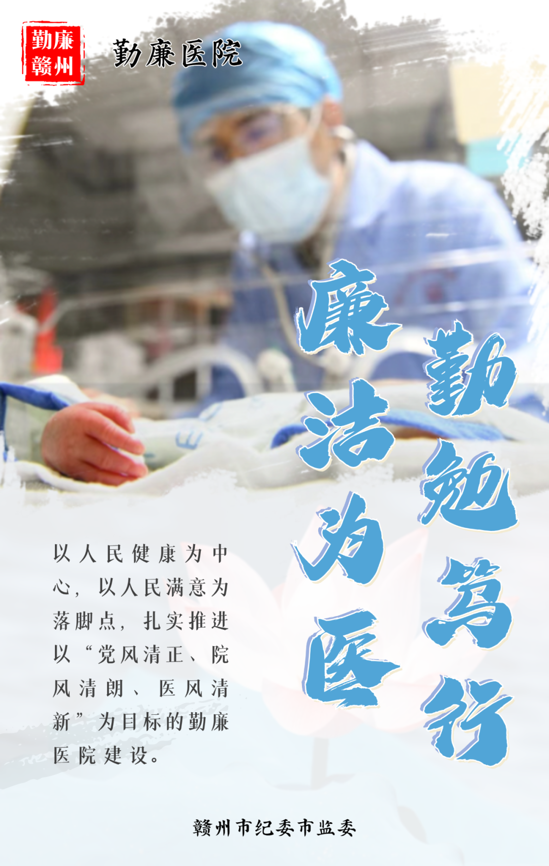 赣州市以“党风清正、院风清朗、医风清新”为目标打造勤廉医院,以健全监督体系、弘扬勤廉文化为抓手,持续深化医药卫生体制改革,大力弘扬医疗卫生职业精神,切实解决群众看病难、看病贵等问题,推进医疗市场秩序规范、就医环境持续向好,让清风正气惠及广大人民群众。