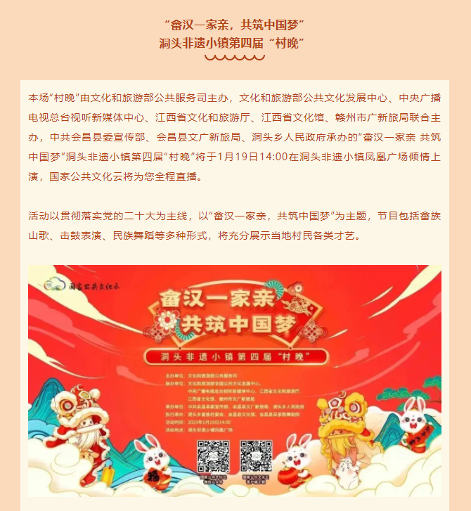 国家公共文化云直播会昌县“畲汉一家亲,共筑中国梦”洞头非遗小镇第四届“村晚 ”