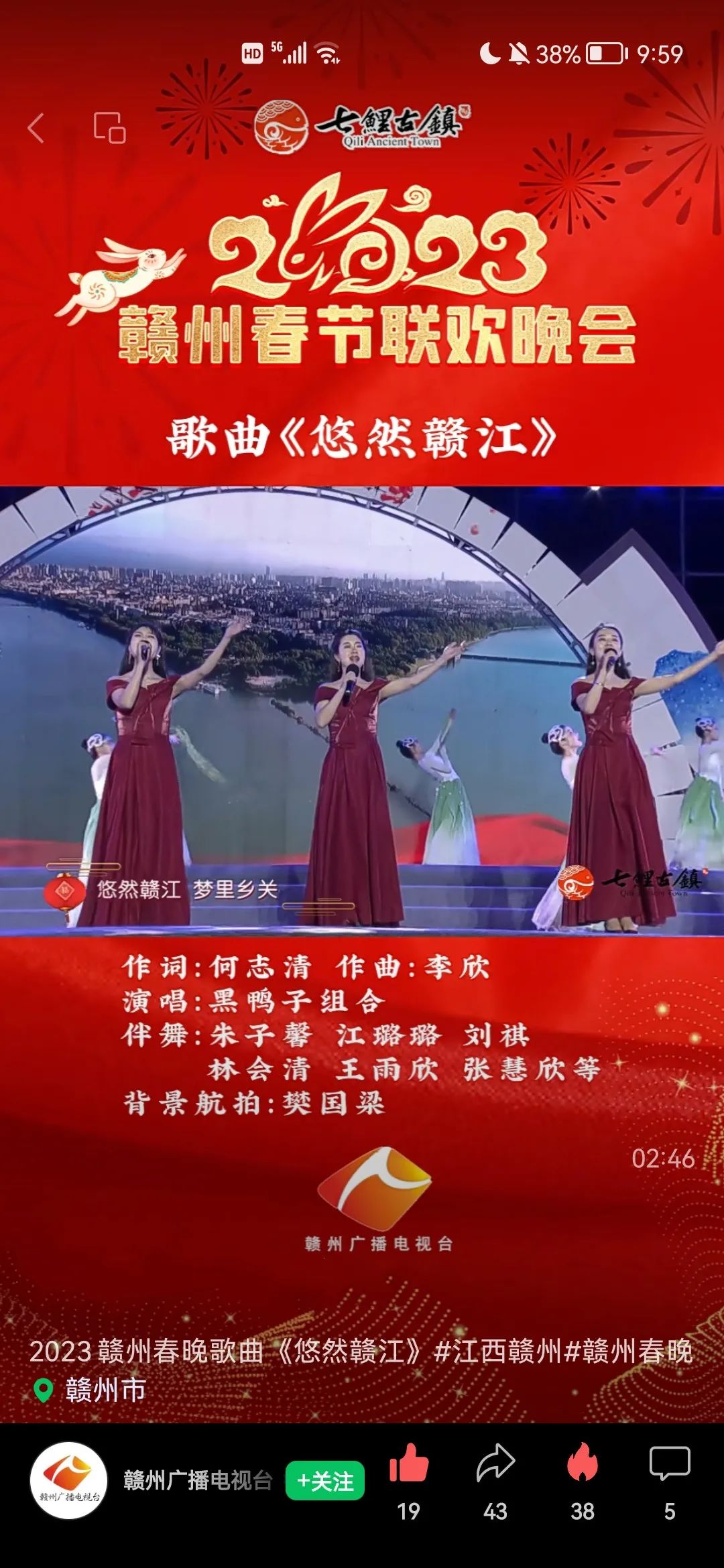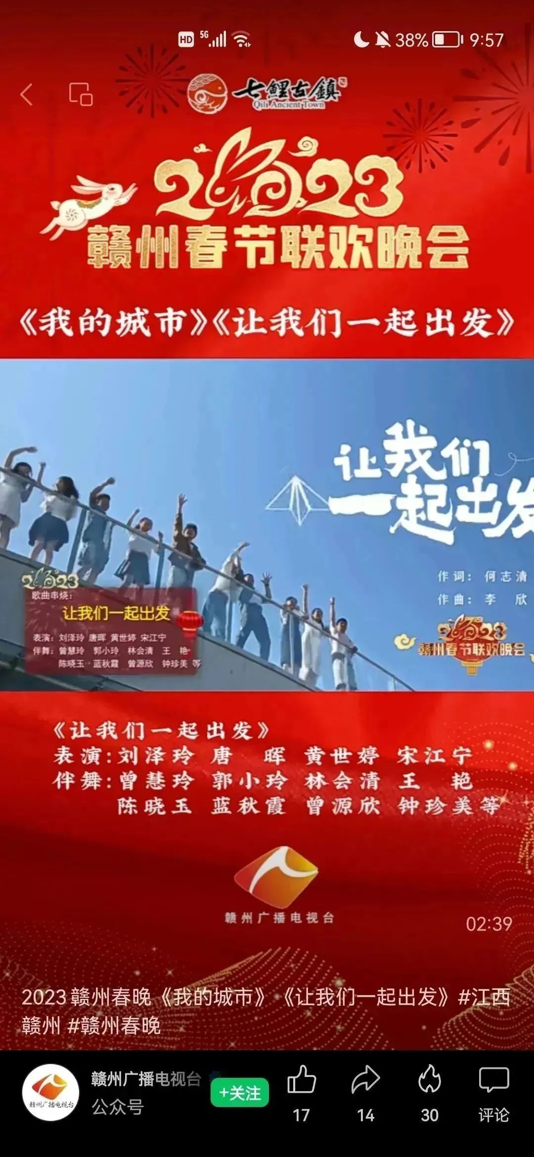 赣州广播电视台发布赣州春节联欢晚会由赣州市文化馆创作的歌曲《让我们一起出发》《悠然赣江》等