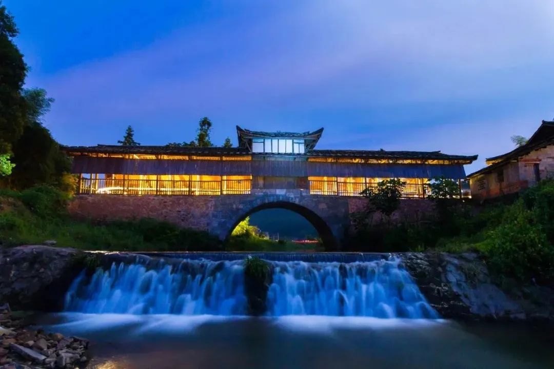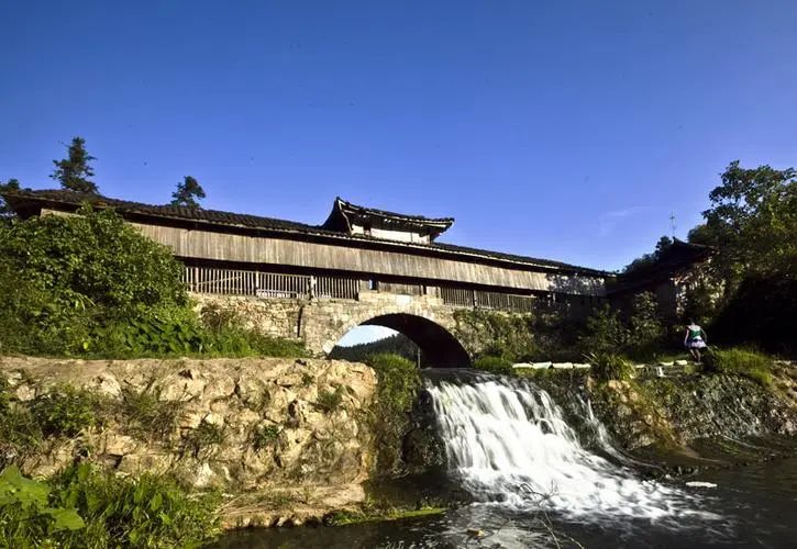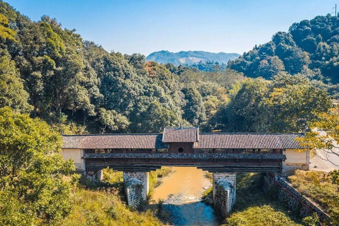 永宁桥位于石城县高田镇岩岭区上柏村。清乾隆三年,上柏村熊氏族人集资在上柏溪上建桥,为祈求平安,将桥命名为“永宁桥”。清同治五年,熊氏族人又在桥上增建亭阁、桥廊。阁分五段,中段最高,两边逐级降低,中段建“武圣庙”,祀关羽像。桥基全部由麻条石砌成,单孔结构,桥廊全长32.75米,桥面宽5.4米,桥拱跨度达10.6米。两边设靠栏木凳,供人憩息。桥身坚实,格局古朴,为南方山区特有的建筑。旧时,除了作为通道之外,这座古桥还是村中演戏、聚会的重要场所。每当到了喜庆的日子,如过年过节、婚嫁之时,当地熊氏客家人就会在廊阁中演戏、聚会,十分热闹。