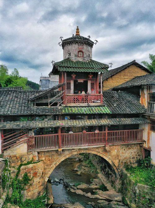 永镇桥(永镇廊桥),位于江西省赣州市安远县城西的新龙乡江头村甲江河上,建于清顺治九年(1652年),僧人欧阳融六慕化建造。永镇桥3孔,长38.5米,宽4.33米,为石墩木梁悬臂式廊桥。石桥墩采用花岗岩条石、石灰砂浆砌筑,桥墩迎水面砌成往上翘起的金刚分水尖形式。墩台上部以纵横交错、层层叠出的杉木悬臂梁承托桥面。桥面上建有木廊瓦桥,以八个抬梁式屋架承受屋面,分长廊为9间,中开间高出1米,前设天窗,后设神龛,两侧檐柱间用杉条板组成护栏,檐内柱之间安放杉条木坐凳,以矮柱小梁拉结。两桥头分别建长宽约4.8米的凉亭。亭内建九级条石阶梯登桥身,凉亭门额上书楷体“永镇桥”3字。它在石质桥墩上架于杉条木,多层横跨桥孔,而别于一般石拱桥,是我国古建木作技术在石拱桥中的巧妙应用。