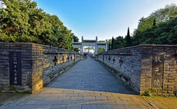 赣州文庙是江西省现存规模最大、保存最完整的古代县学校址,也是江南现存的四大孔庙(文庙)之一。我国自孔子时始,学府前一般都有“泮池”,“泮池”上的那座桥古时就被称为“状元桥”。都说“状元桥上走一走,考试读书不用愁”。2004年5月14日,文庙广场复原工程在现场勘测时,市博物馆技术人员严格按中国传统建筑营造法进行勘测时,发现了隐身地下200多年,始建于清乾隆年间建造的状元桥。发掘出来的时候桥面表层的覆土仅有薄薄的15厘米,更有意思的是,复原维修工程中拟建造的状元桥与发掘出来的状元桥位置惊人吻合,拟选用的石材与发掘出的古石桥材质也是完全一致,拟建造的桥宽也与古桥宽度同为3米。