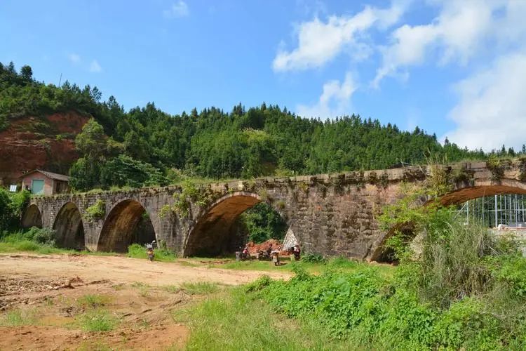 龙头石拱桥又名“安福桥”,是安远县古代通往赣州的主要桥梁之一,位于车头镇龙头村。始建于清朝康熙二十六年(1687),乾隆十六年,桥被洪水冲毁,乾隆四十九年,由邑人欧阳菊芳等18人捐银二千两重建。该桥为青条石叠砌而成,六墩五拱。桥全长52.80米、宽4.30米、高7.7米。