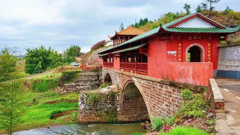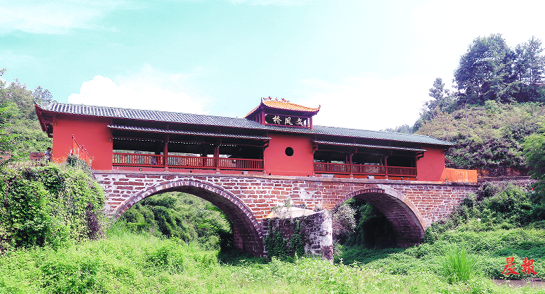 文凤桥位于安远县龙布镇,俗称“迳背桥”,桥身以条石浆砌而成,总长约40米,桥面宽4.84米,通身高约7米。整座桥为一墩、二台、二孔,分木、砖上下两层。桥面建有木质长廊,可为行人遮风挡雨,其间数十道横梁支撑琉璃瓦铺盖,四檐飞翘,中部起一小亭,下有“文凤桥”三字。廊内描龙画凤、翠竹流水,花鸟、人物栩栩如生。桥中央倒悬的斗盆内有彩色诗画29幅。其内部还设有神龛,供奉着许真君等神像。中心桥墩凸出约3米,形似船头,中轴向上斜伸,尖端高翘,取破浪之意。文凤桥设计科学,气势宏伟,至今坚固如初,为研究赣南古代石拱桥的建筑艺术提供了宝贵的实物资料。