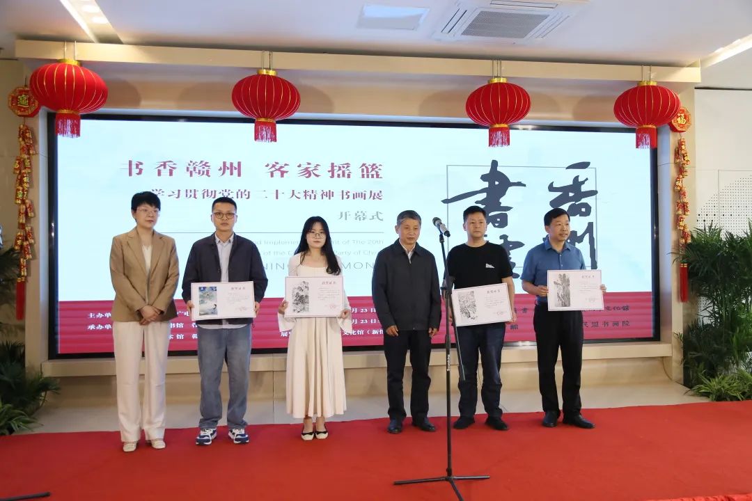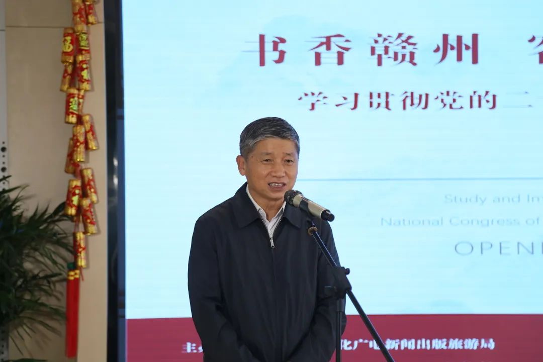 群贤毕至砚池畔,笔墨丹青写春秋。4月23日,由赣州市文广新旅局主办,赣州市图书馆、赣州市文化馆、赣州美术馆、赣州民盟书画院承办的“书香赣州·客家摇篮”2023学习贯彻党的二十大精神书画作品展在赣州市文化馆(新馆)开幕。省政府原副省长、中国摄影家协会会员熊盛文,市文广新旅局党组成员、副局长夏涵涵 ,市文广新旅局副局长翟朋,市文广新旅局二级调研员张伟,民盟市委会副主委刘南海参加开幕仪式,开幕式由市图书馆馆长刘小灵主持。
