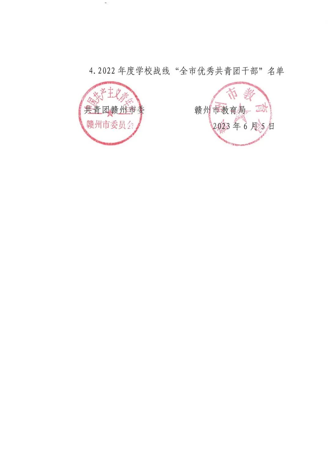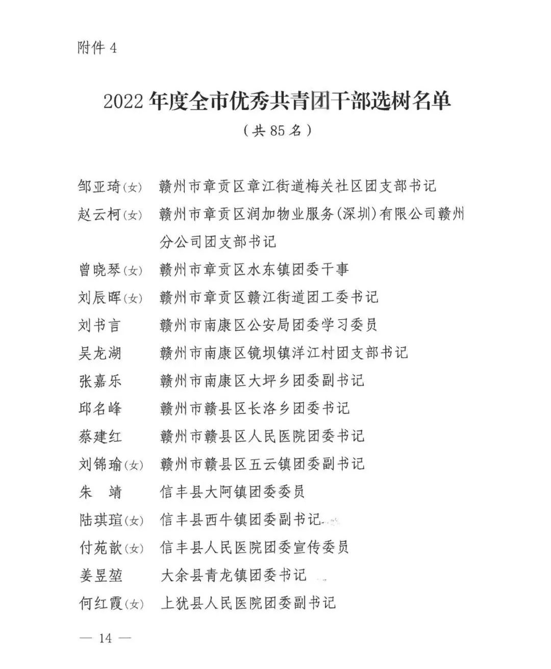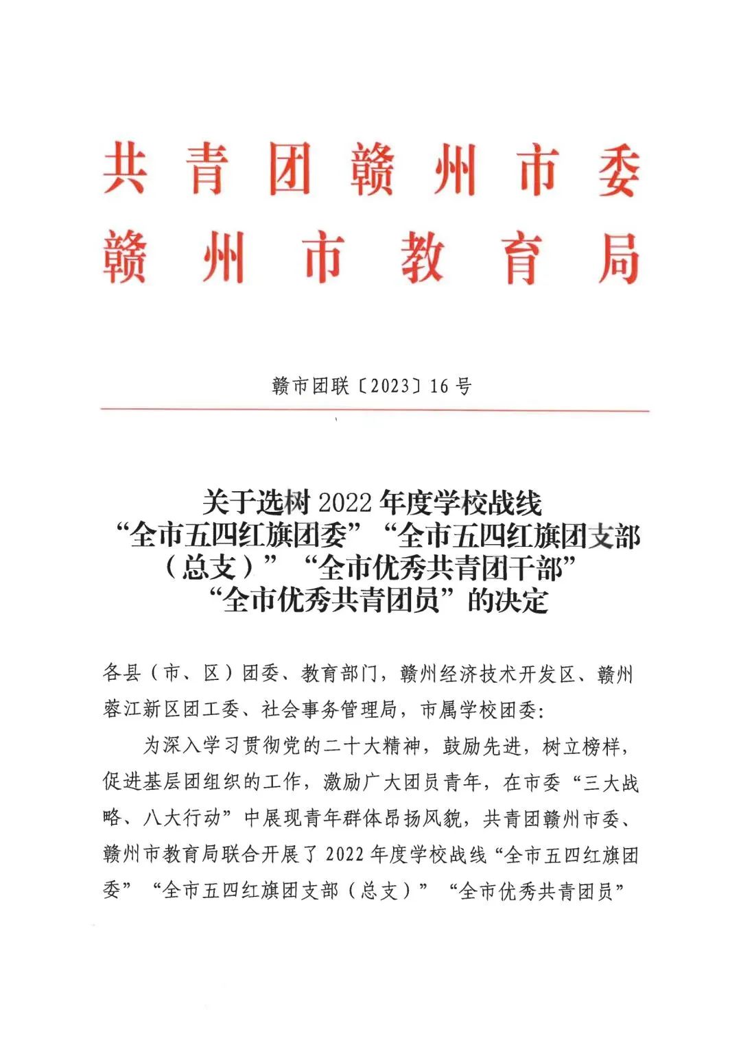 6月5日,经过严肃推荐,认真审核,严格把关,共青团赣州市委、赣州市教育局决定,选树38个团委为“全市五四红旗团委”,选树21个团支部为“全市五四红旗团支部”;选树93名团员为“全市优秀共青团员”,选树49名团干为“全市优秀共青团干部”(含5名基层少先队辅导员)。