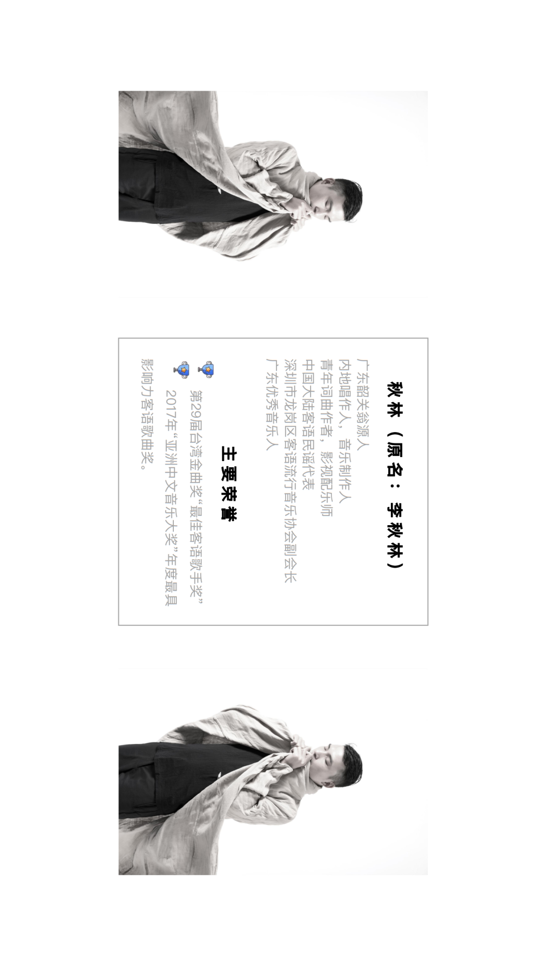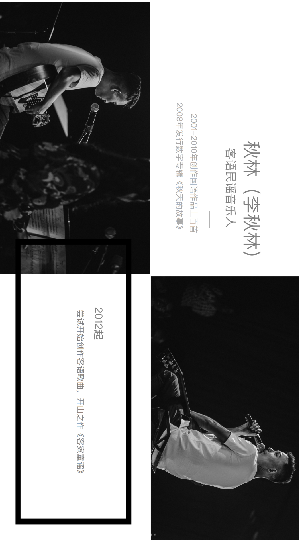 早期从事国语创作,后推出客家语作品。他被评为第二届客家流行音乐金曲榜最佳新人,其作品《二十四节气歌》被评为金曲榜十大金曲之一。