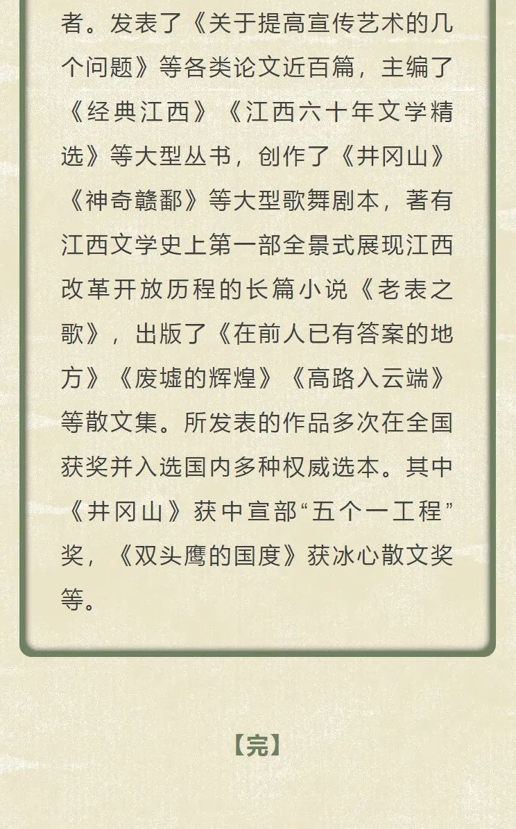 ※ 特别声明:本公众号仅用于赣州市文化馆公共文化服务及群众文化艺术普及,不用于任何商业用途。所转载文章及图片、视频、音频等版权均属原作者。如有侵权,请及时与本公众号联系。