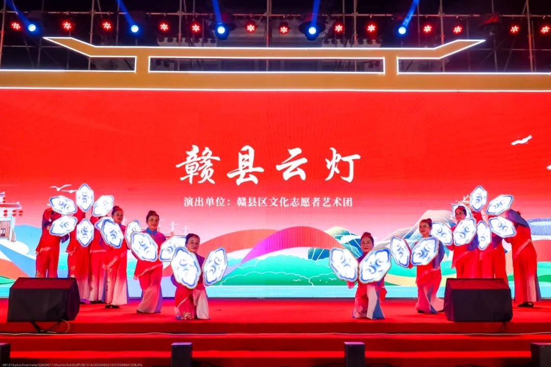 赣县云灯2013年被列入第四批省级非物质文化遗产项目名录。由东河戏《白蛇传》水漫金山水族舞水旗演变而来,是灯彩类唯一采用舞台戏曲元素表演的灯彩艺术。云灯的云牌,形式单一,但内容丰富。云灯道具上绘制有各种寓意吉祥的彩绘图案,尤其在夜间点亮,最为炫彩夺目。