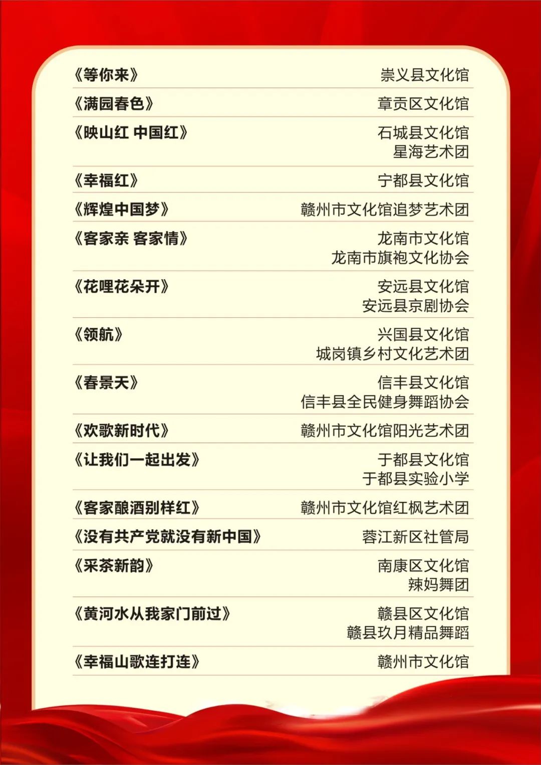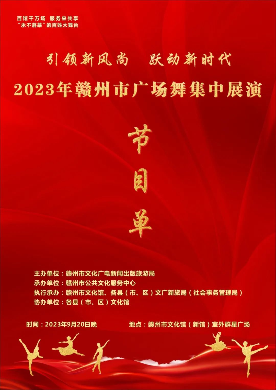 为深入学习宣传贯彻党的二十大精神,推动广场舞活动蓬勃开展,创作推广优秀广场舞作品,不断满足人民日益增长的精神文化需求,2023年赣州市广场舞集中展演将于9月20晚上19:30在赣州市文化馆(新馆)室外群星广场举行。由各相关县(市、区)文化馆选送的16支广场舞队伍将登台演出,届时,欢迎广大市民朋友现场观看,共享舞动热情、缤纷多彩的夜间文化生活。
