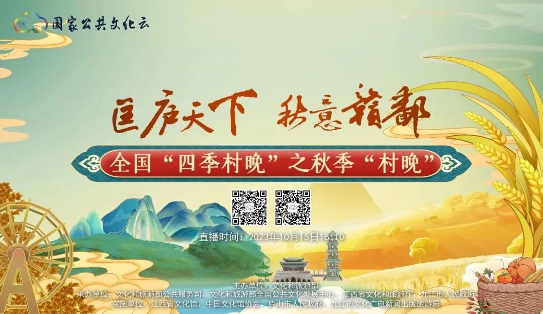 2023年10月15日下午,由文化和旅游部主办,文化和旅游部公共服务司、文化和旅游部全国公共文化发展中心、江西省文化和旅游厅、九江市人民政府承办,江西省文化馆、中国文化馆协会、庐山市人民政府、九江市文化广电新闻出版旅游局实施的“匡庐天下· 秋意赣鄱”2023 年全国“四季村晚”之秋季“村晚”文艺展演活动在庐山市海会镇海会社区钱家畈举行,赣州市文化馆原创舞蹈节目《幸福山歌连打连》受邀参加本次村晚活动。