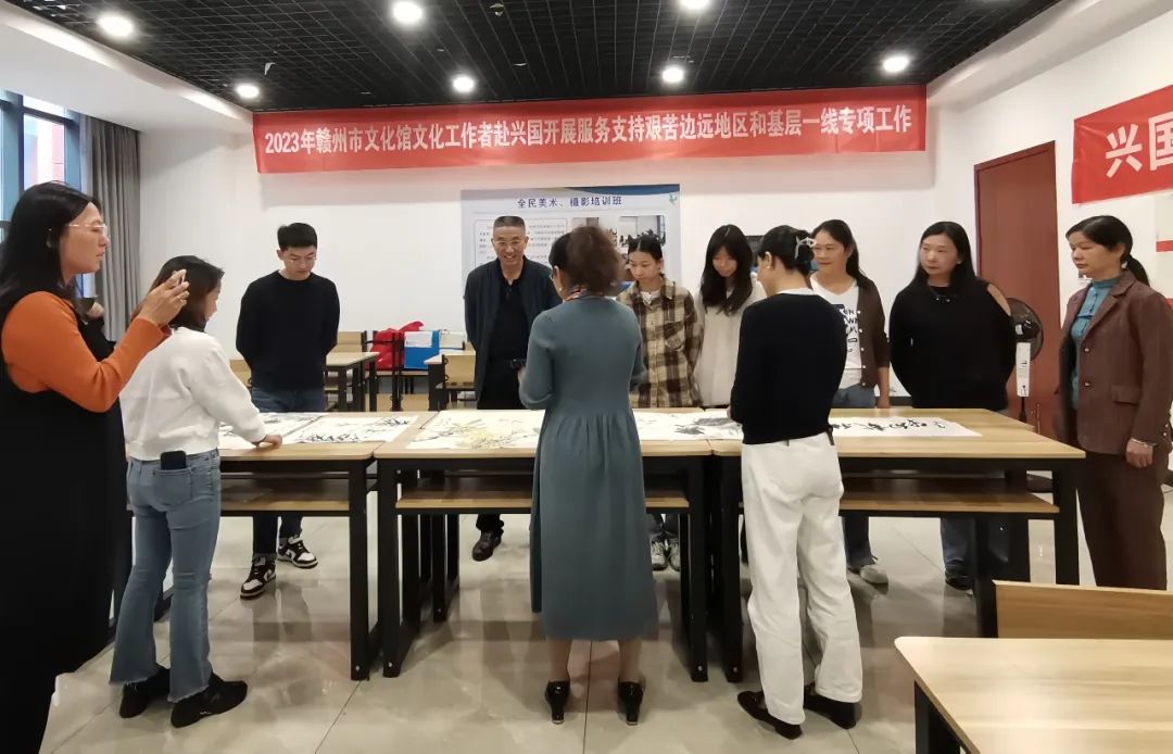 通过开展此次专项活动,市文化馆充分发挥服务人员业务特长,加大了对基层书画创作的指导力度,促进了赣州市与兴国县基层文化工作者之间的共创交流,坚定了文化自信,增强了凝聚力和向心力,同时加强了基层文化人才建设,增强了文化馆公共文化服务功能。