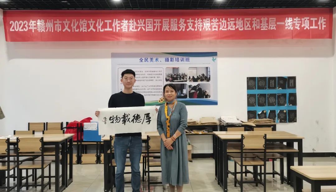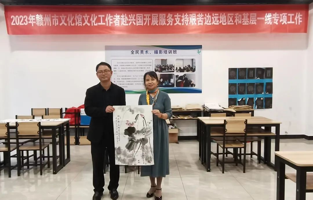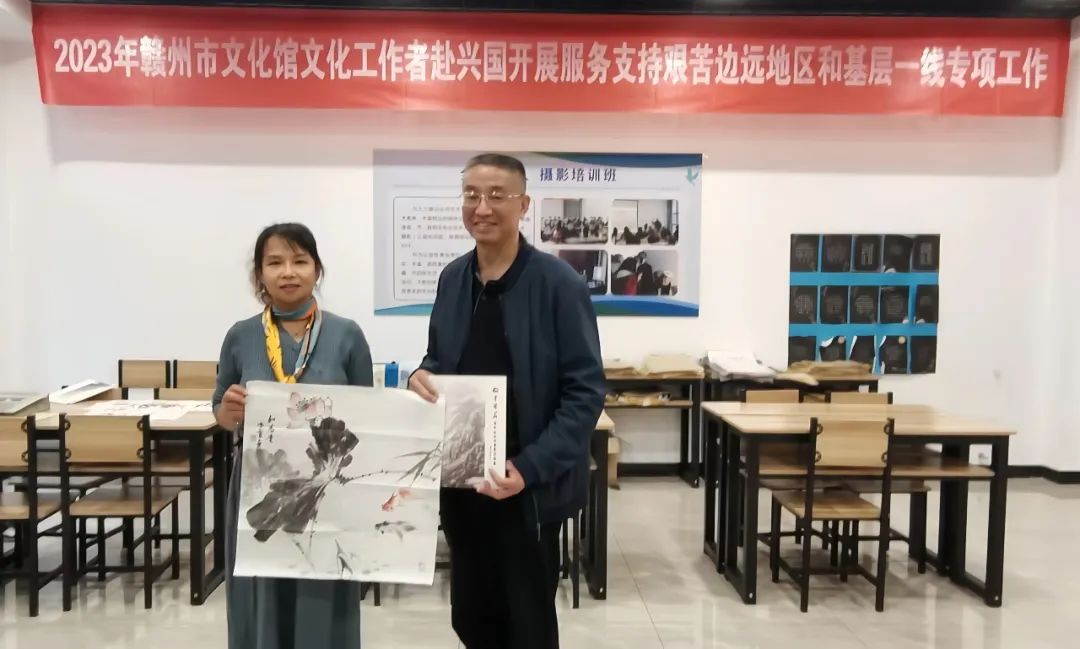 为贯彻落实党的二十大精神和习近平总书记对文化工作作出的重要指示精神,按照省文旅厅、市文广新旅局关于2023年文化人才服务支持边远地区和基层一线专项工作部署,加强基层文化队伍建设,10月20日,赣州市文化馆视觉部主任冯霄赴兴国县文化馆开展服务支持艰苦边远地区和基层一线专项工作。