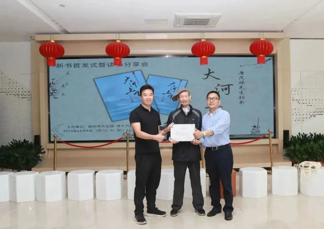 11月4日,唐茂祥《大河上下》新书首发式暨读书分享会在赣州市文化馆群星讲堂成功举办,赣州市作家代表、大学生代表、阅读爱好者及唐茂祥先生的同学亲朋共50余人参加本次活动。本场活动,通过作家、评论家的全方位解读,以及唐茂祥先生的同学、亲朋的讲述,多视角、全方位解读了《大河上下》这本长篇生态小说。