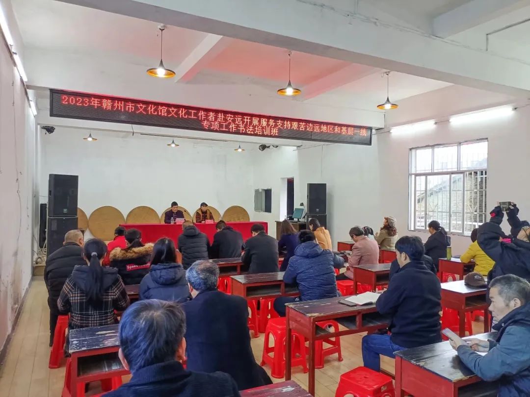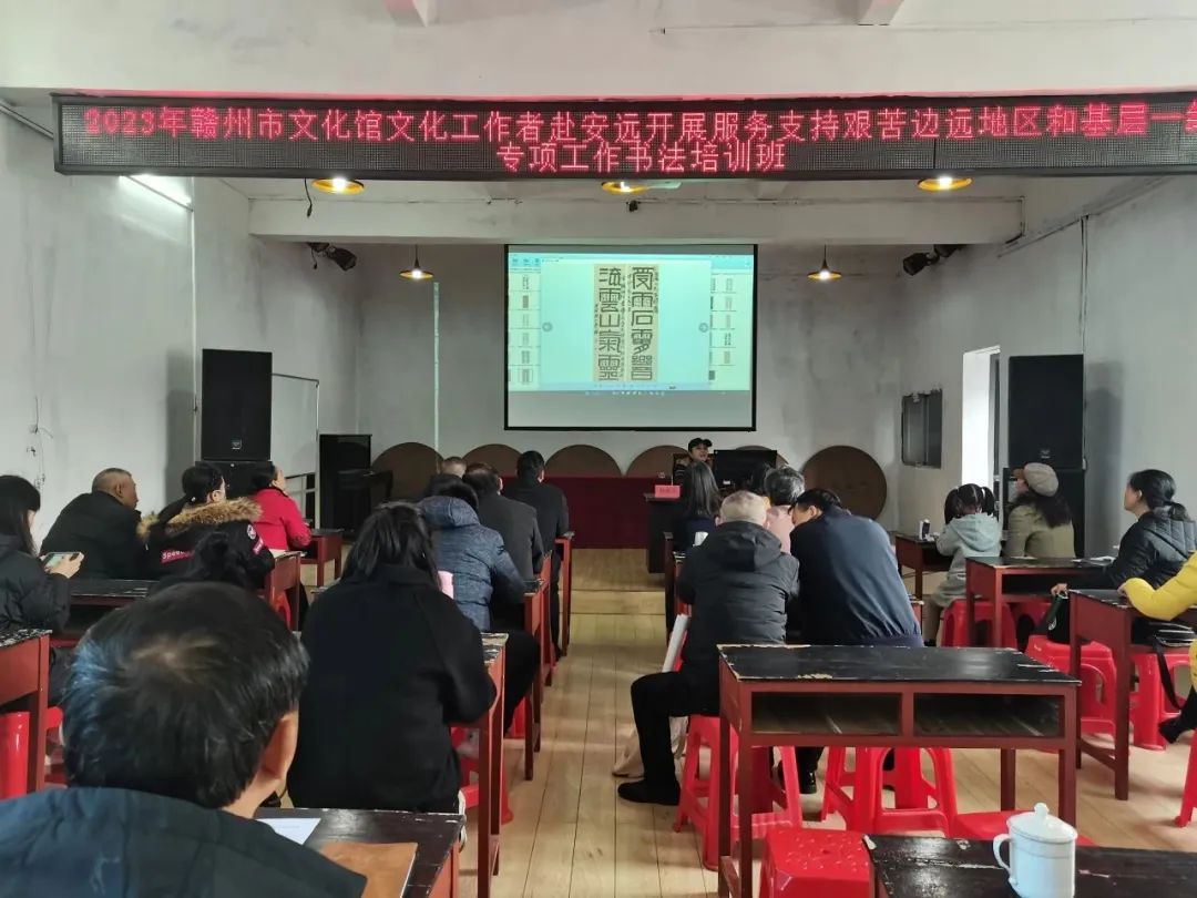 根据省文化和旅游厅《关于做好2023年度文化人才专项服务支持艰苦边远地区和基层一线专项实施工作的通知》文件精神,为进一步提高乡镇文艺骨干的综合素质和业务水平,充分发挥文化艺术的教育、熏陶、引导、激励作用,进一步提高我市基层群众文化工作者为群众文化服务的思想意识,提升基层文化服务水平,2023年12月1日—2日,由赣州市公共文化服务中心、赣州市文化馆及安远县文广新旅局主办,安远文化馆承办,书画家赖俐华老师在安远县文化馆内开展了服务支持边远地区和基层一线专项实施工作培训班。