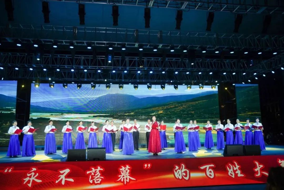 舞蹈《红色情怀》、袍秀《映山红》、舞蹈《祖国的母亲河》、配乐诗朗诵《诗意中国》,抒写了老区群众对党和祖国的坚定信念和真挚情感,展现了红色基因的薪火相传。