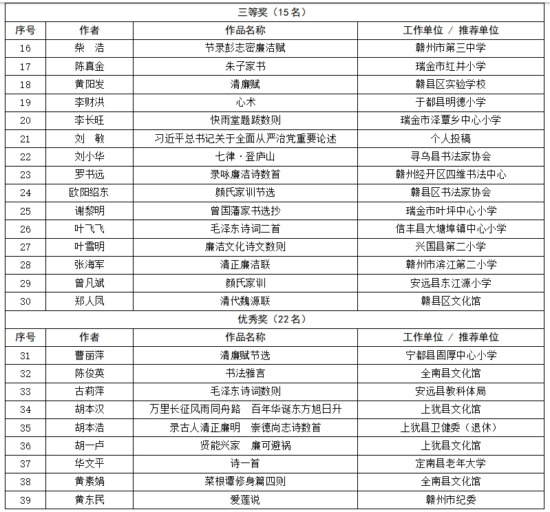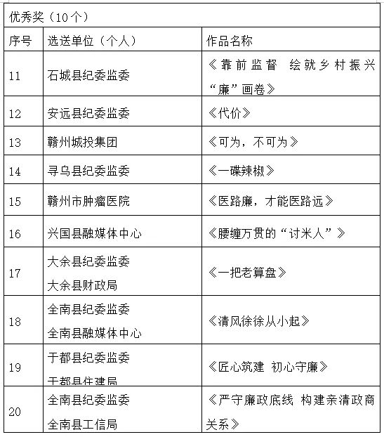 1月30日晚,赣州市“清风光影”廉洁微视频大赛暨“翰墨颂廉洁·丹青扬正气”廉洁书画作品大赛颁奖活动举行。经过层层评选,精选出200幅书画作品、 20部微视频作品入选 ,其中,2个廉洁微视频、8幅廉洁书画作品获一等奖。